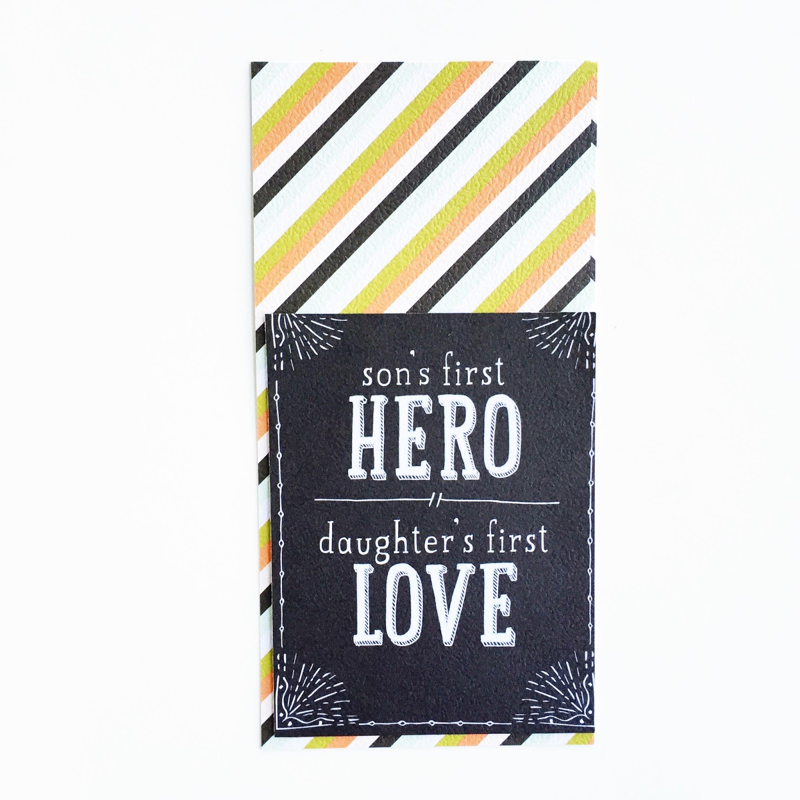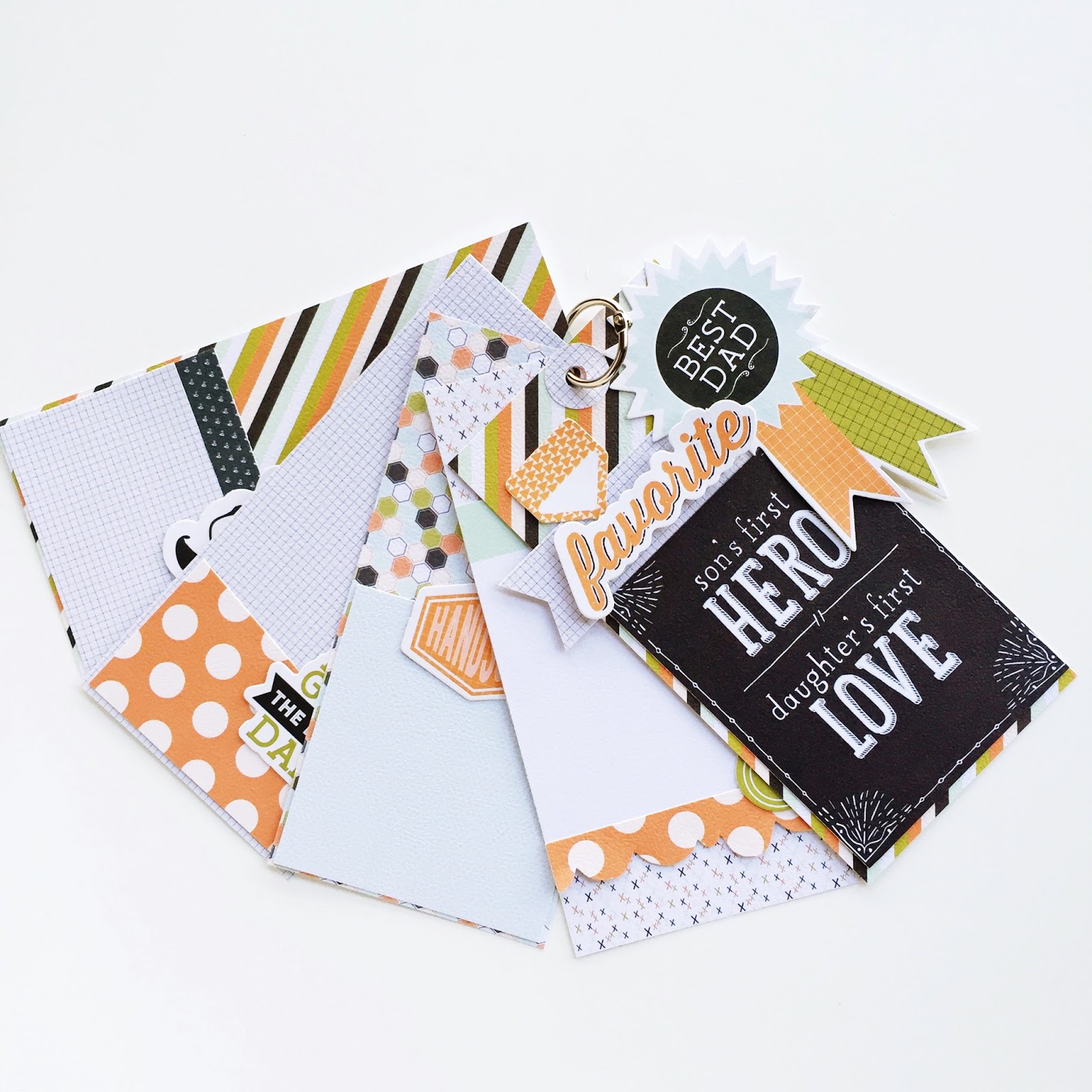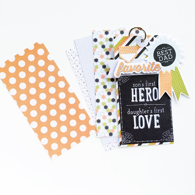 Create white space on the inner pages of your album with the less busy patterned paper. My plan is to encourage the kids to share their special memories with and about their dad, in their own hand writing.