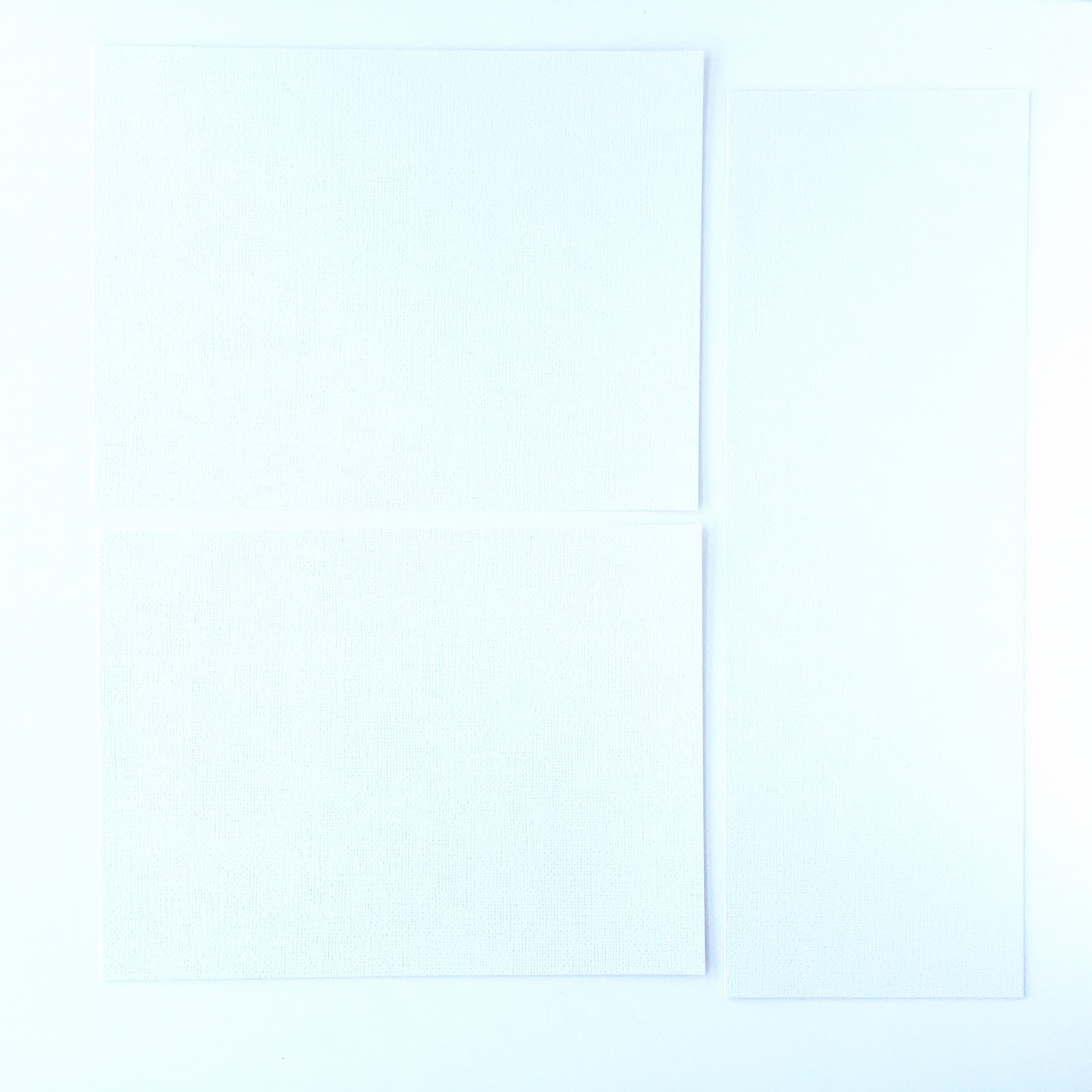 The base of each of these cards has been created using one 12x12 piece of white cardstock. I trimmed the cardstock at 8" and then trimmed the 8"x12" piece in half at 6". Fold each card base in half.
