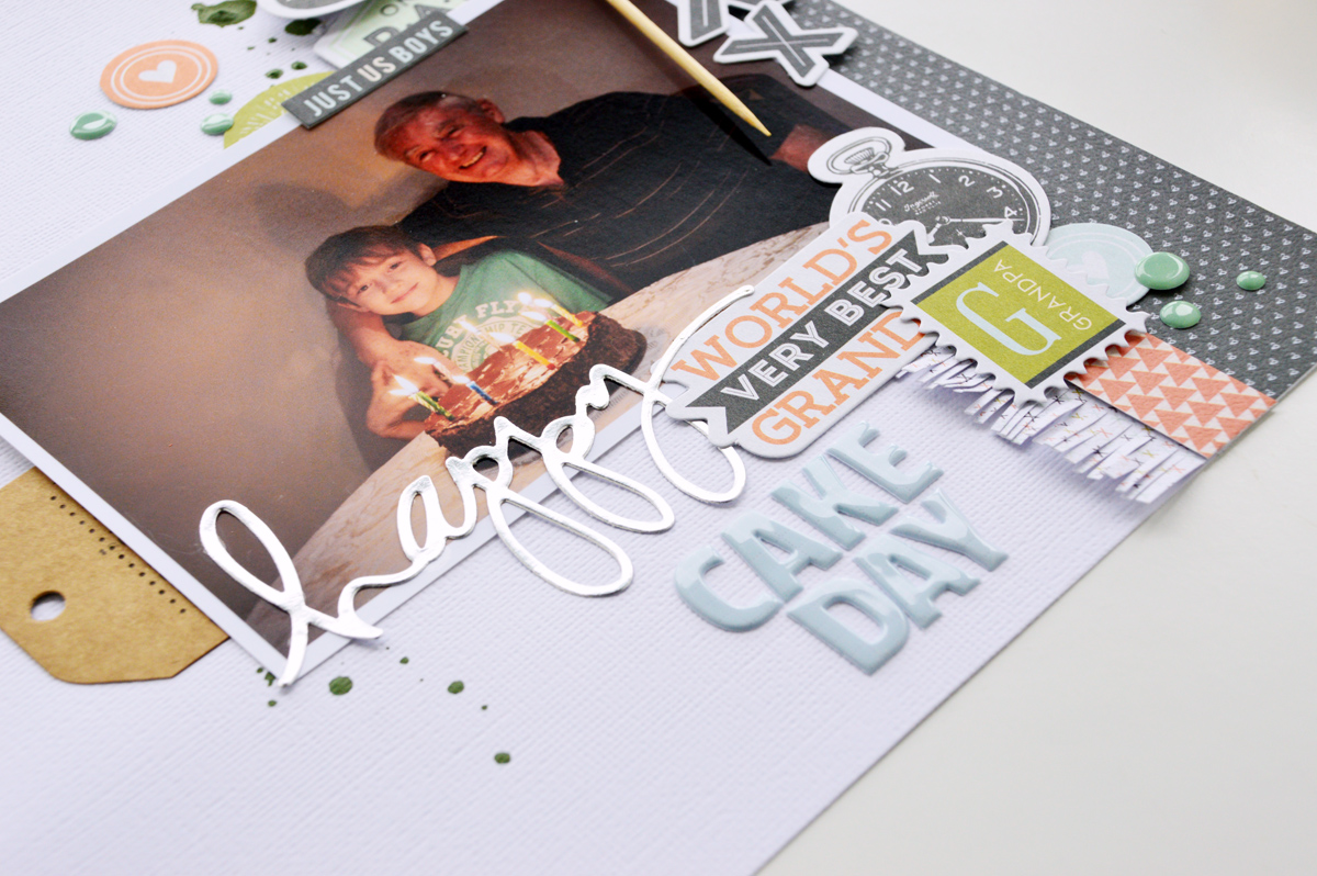 I am loving the versatility with this paper collection. And, it's definite masculine appeal doesn't have to be restricted to the humble Father's Day project. For this page, I've created a birthday theme. Something to celebrate the boys!