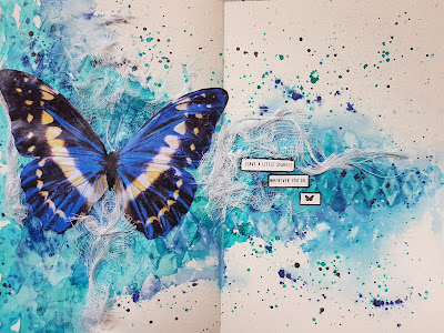 Now to add a little bit more texture - I used Art Basics 3D Gloss Gel to adhere my cheesecloth and gave it a quick dry with my heat gun. I then cut out my butterfly print that I got from Pinterest (the link will be over on my blog) and also adhered it using the 3D Gloss Gel.