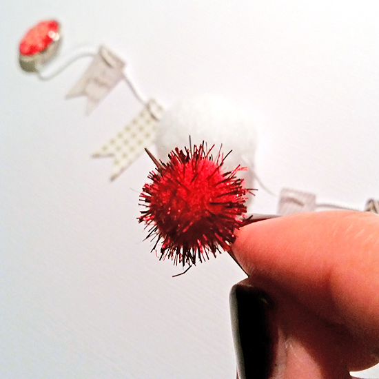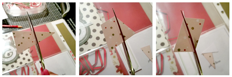 I have adhered a mini banner which I created from a triangular shape from the ephemera pack...