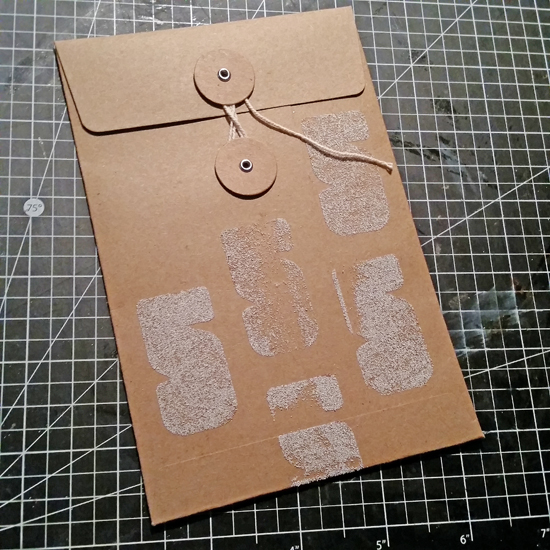 Number; large kraft envelope; patterned paper, tag and triangle ephemera