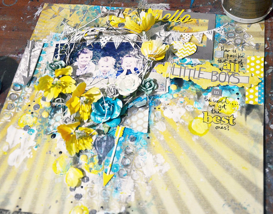 Okay now let me share my creative process with you (I apologise in advance for the not so good photography, by the time I completed the layout it was night time).