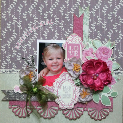 I focused on the grey & green colours in the collection for this page to give a nice soft background. Using the magenta for a pop of colour! I love this cheeky photo of my Evie Jools. In case you can't tell she is in the middle of a very BIG 'say CHEESE'!! LOL