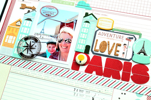 It's Tarrah McLean back with you sharing another travel themed layout! I have used a mixture of Shimelle's Go Now Go and Starshine collections on this layout!