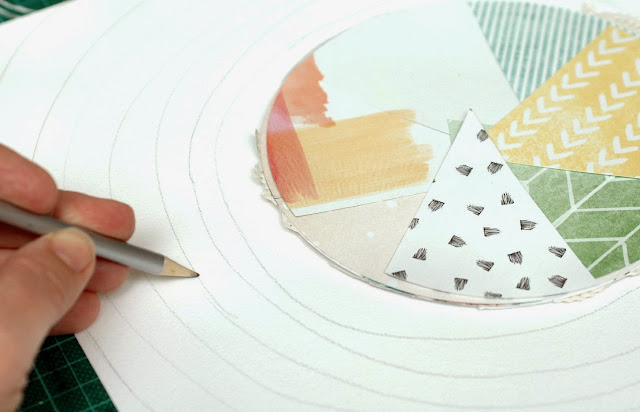 Step 3: Place paper pie in the middle of your white card stock. Grab a pencil and draw circles around it. Repeat until you have a nest of doodle circles covering your background.