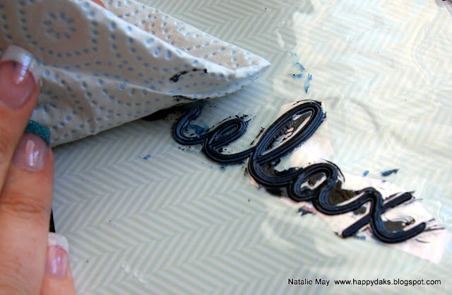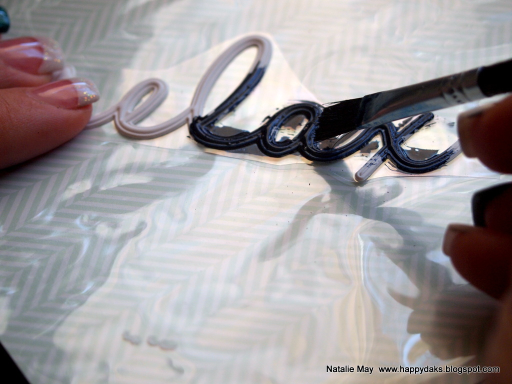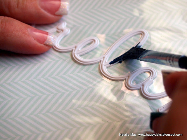 I cut out the desired word first, leaving it on it's backing.