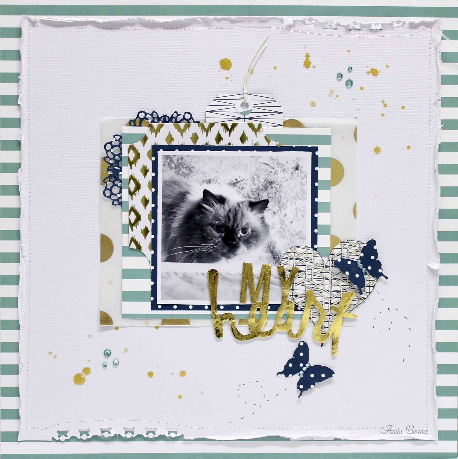 Then I added that lovely Aqua patterned paper