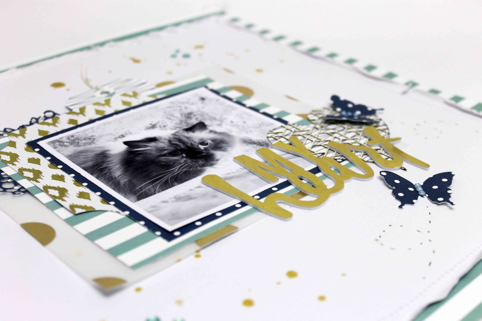 And matted my photo on the dark blue polka dot patterned paper