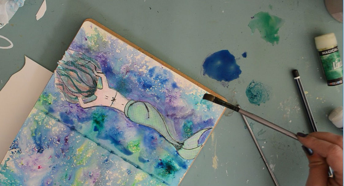 - Tags: Art Journal, Dylusions Paints, Farrel Tailor, Lindy's stamp gang, magical shakers, mermaids, mixed media, Sassy Scrappers, tutorial