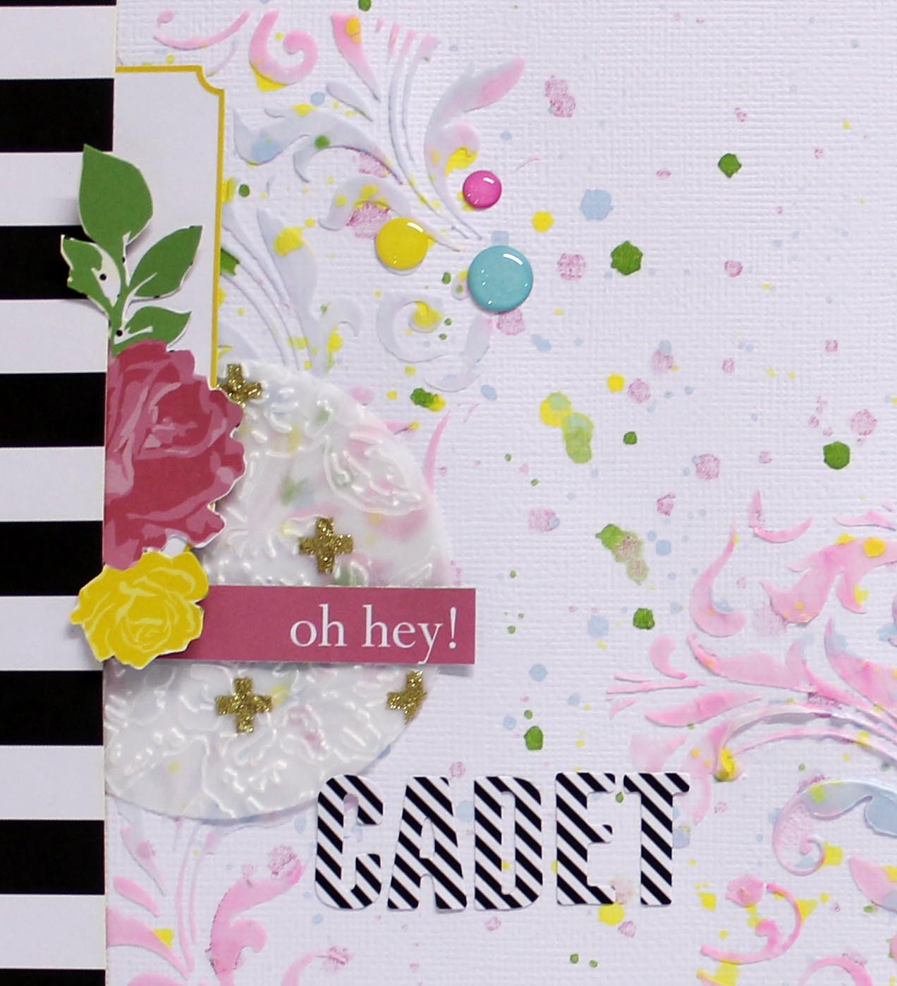 Then added all my embellishments,title ,vellum and enamel dots