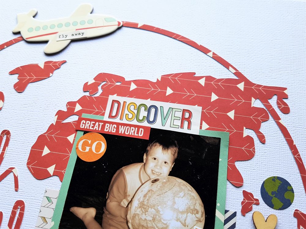 Another confession is I may have already scrapbooked this photo but it really is a lovely photo of my eldest son looking at some countries he would like to go to one day! The perfect photo for this layout!