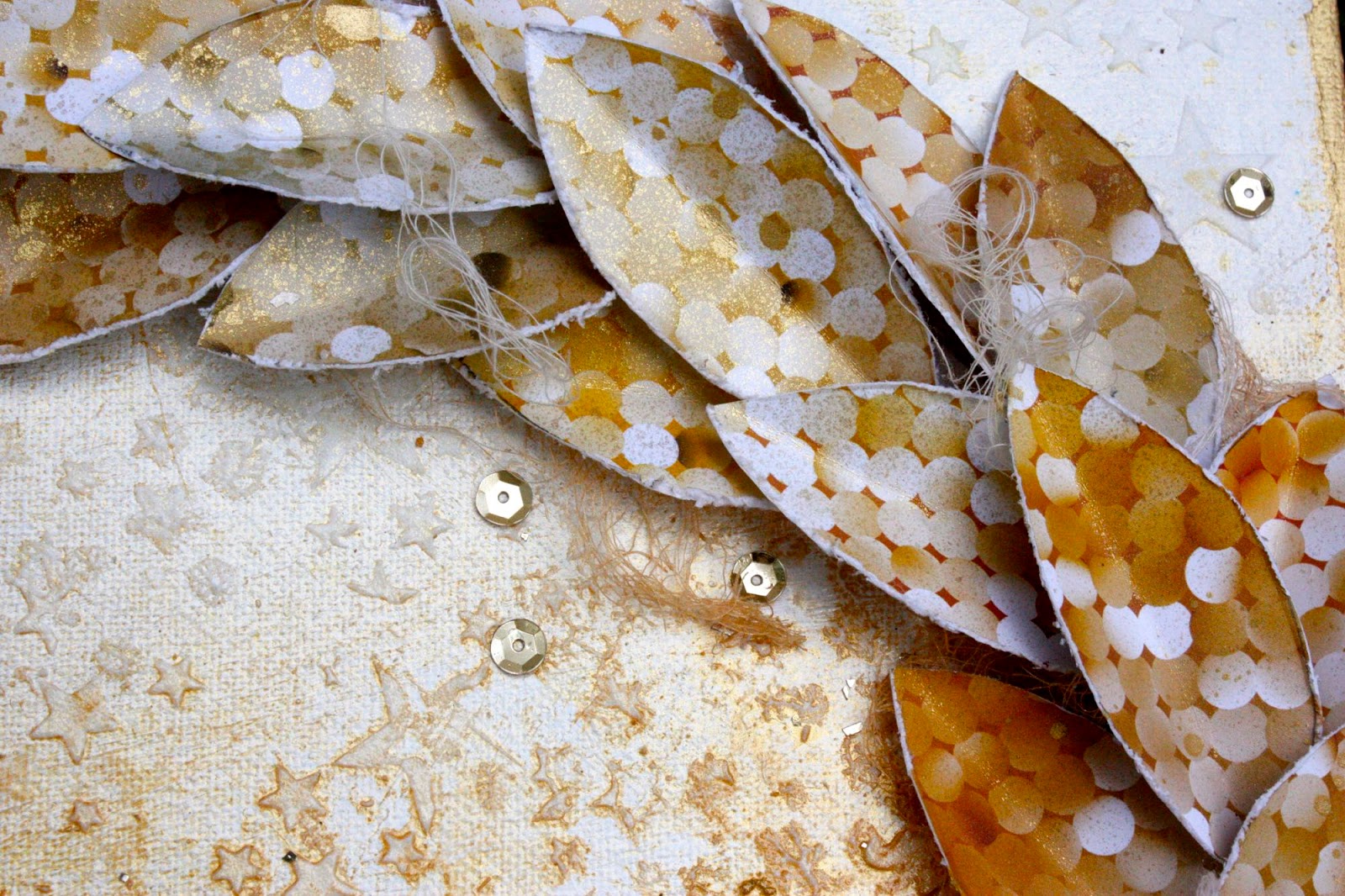 The paper has a gorgeous gold glomesh pattern which I used to trace and cut out