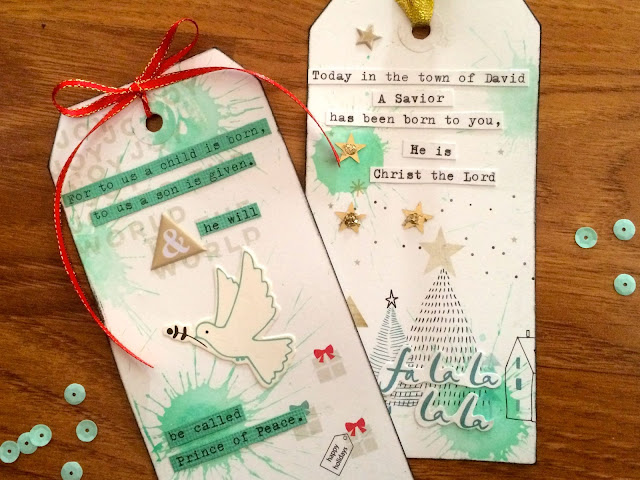 After cutting tags from the 6x6" papers in the Christmas Wishes line I added some random splats