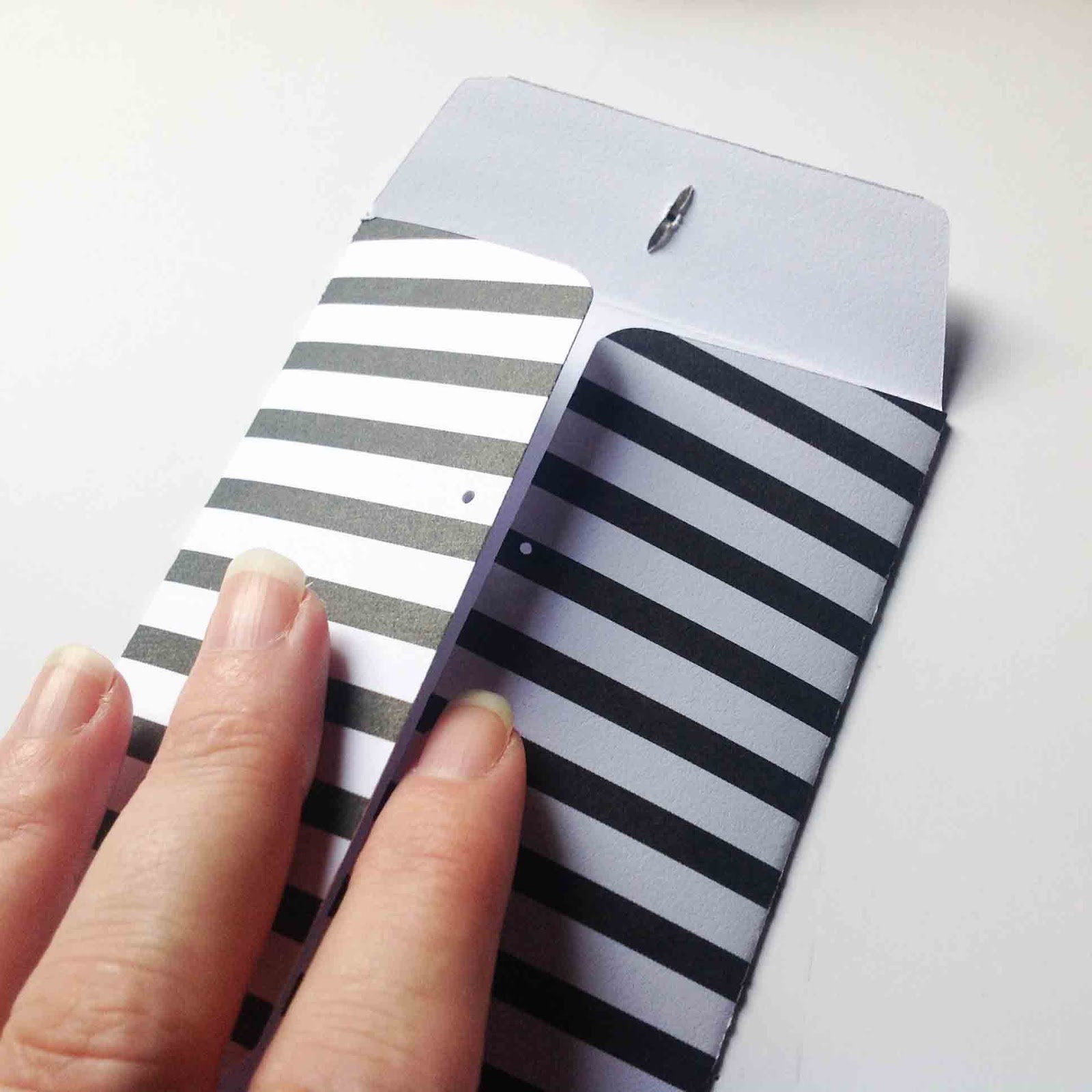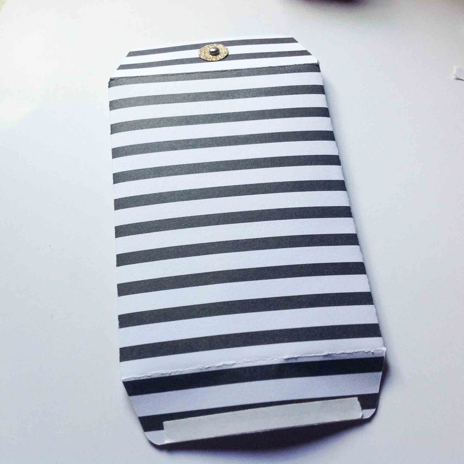 Then add some double sided tape to the bottom flap and tuck it inside the envelop and remove the paper strip and press down to stick it closed