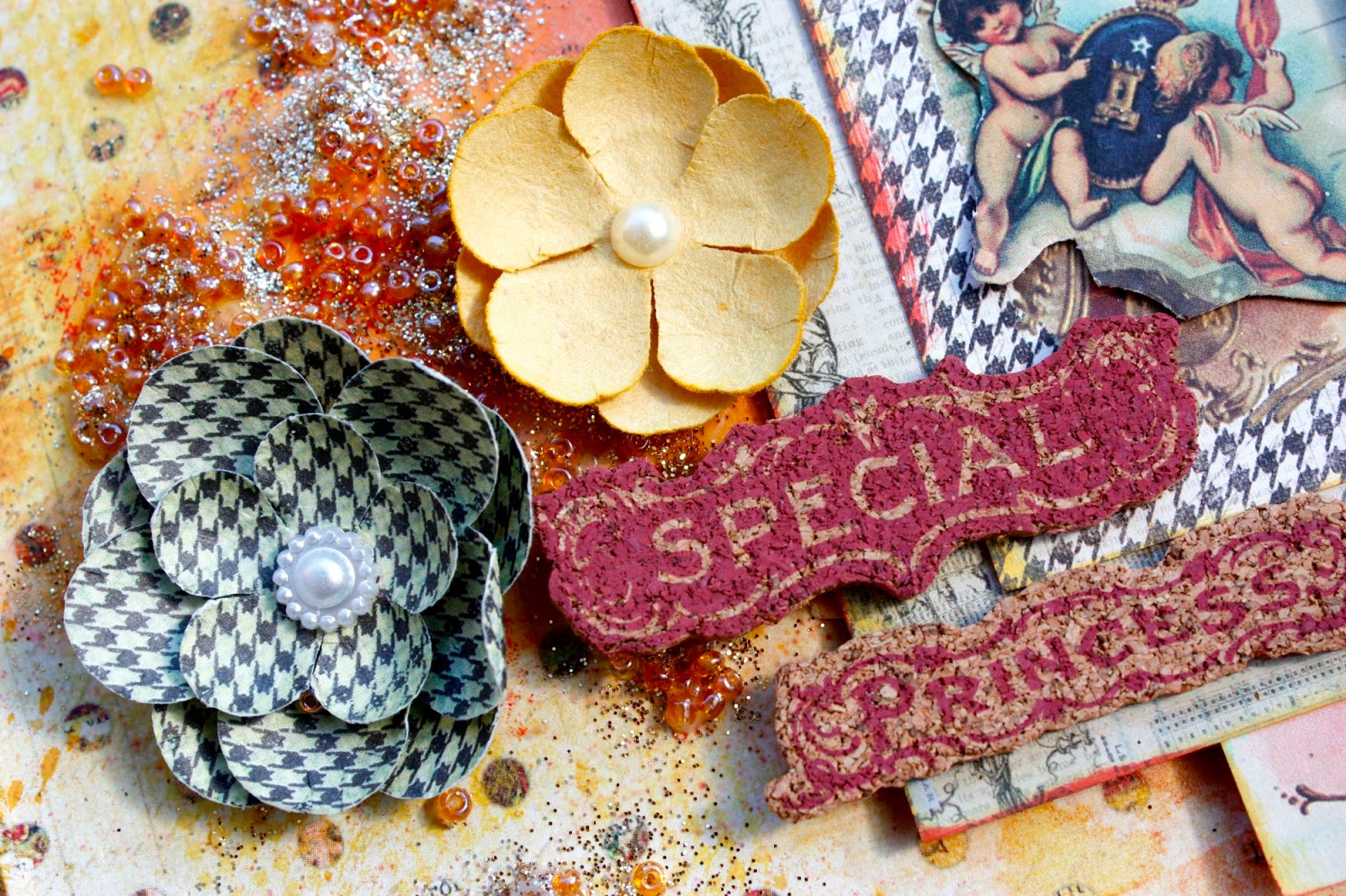 A couple of close ups here of the Prima Art Ingredients. I used glass beads and glitter to add some