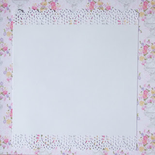 I have used a Cheery Lyn Doily 4" die but you could use paper doilies, 4"circle, scallop circle etc X2 from the Prima Meadow Lark Chloe sheet. Stick these diagonally on the top left & bottom right corner of you centre circle