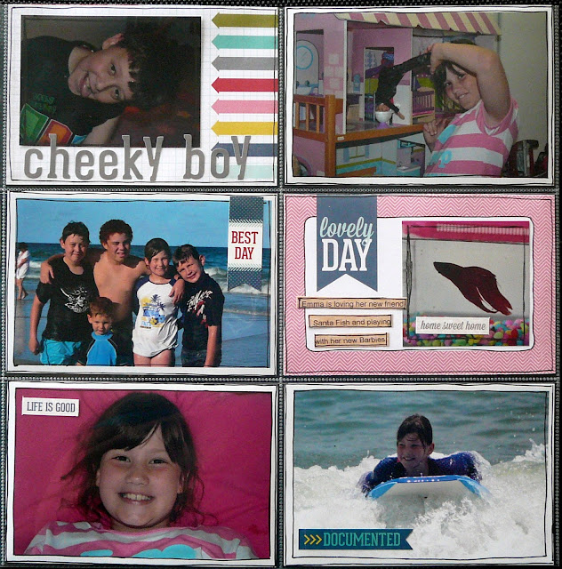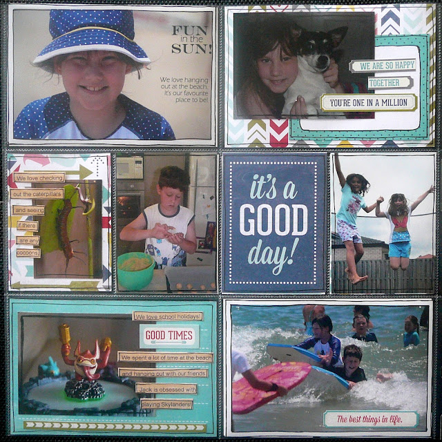 If you haven't tried this style of scrapping yet, you just have to give it a go, it's so much fun! I think the hardest part for me is taking a decent photo of the layouts through the photo sleeves!!