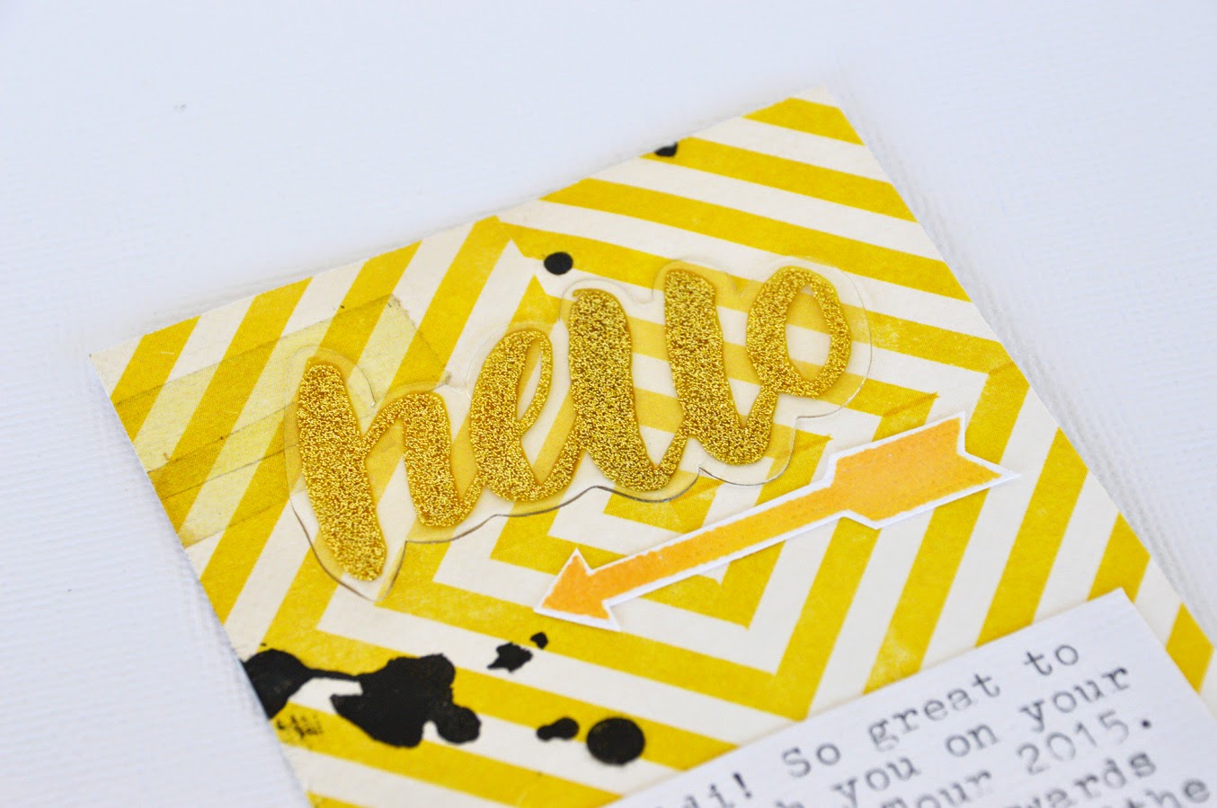 The coordinating embellishments are a lot of fun to layer and play with but I also had to try out the new ombre ink pads from Hero Arts. The arrow stamp, shown below, has been created with a clear Kaisercraft stamp and the Butter to Orange ink pad.