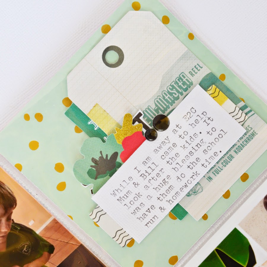 The pocket page design is only 7" wide and in this single page I have managed to include 18 photos on both front and back. Admittedly, I also put together a few collage shots via my iPhone before printing them out.