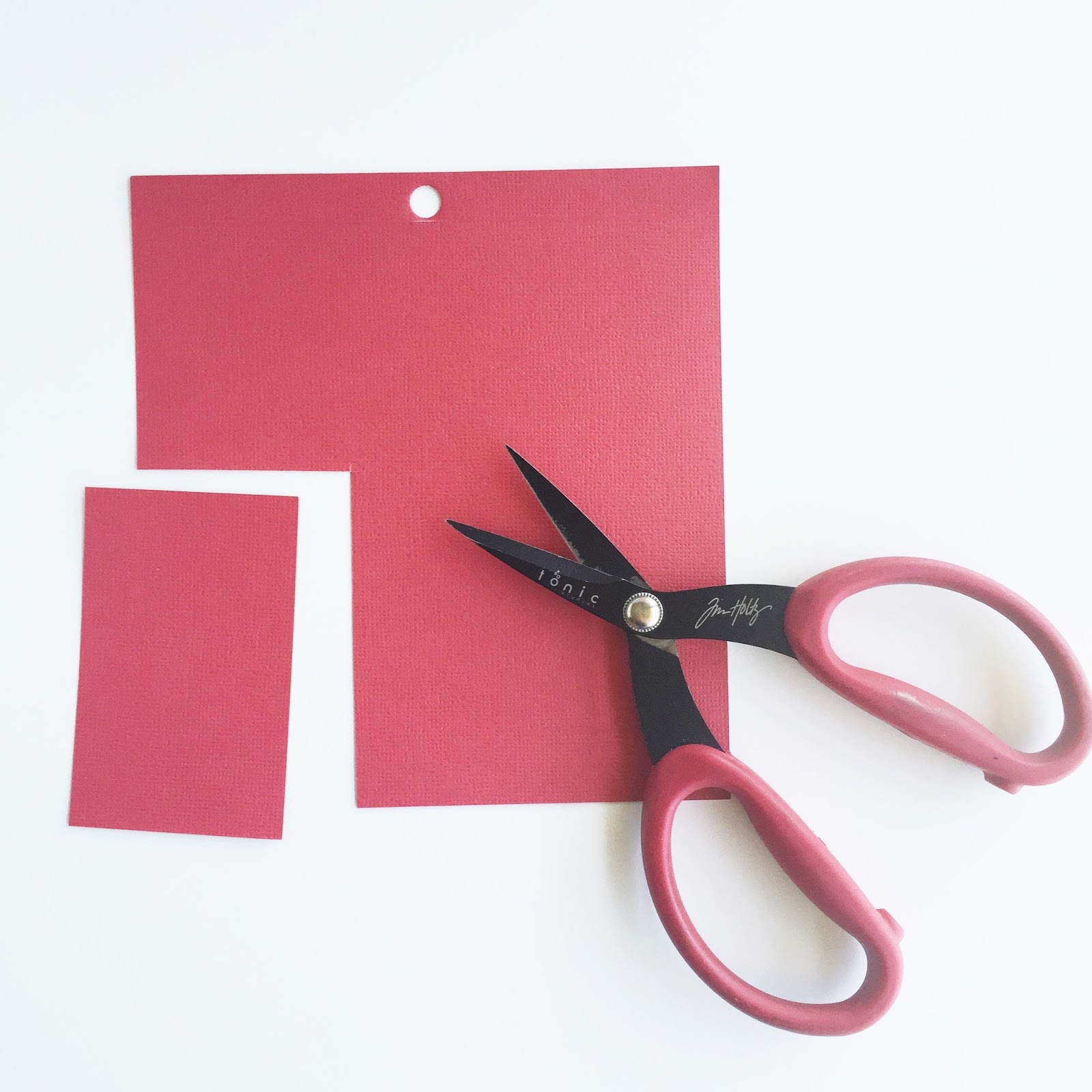 step 3: Trim a piece of cardstock into a rectangle 2”x3.5”. Mark the middle on one of the short ends and trim the sides to create a tall triangle.