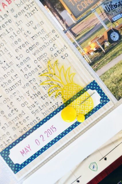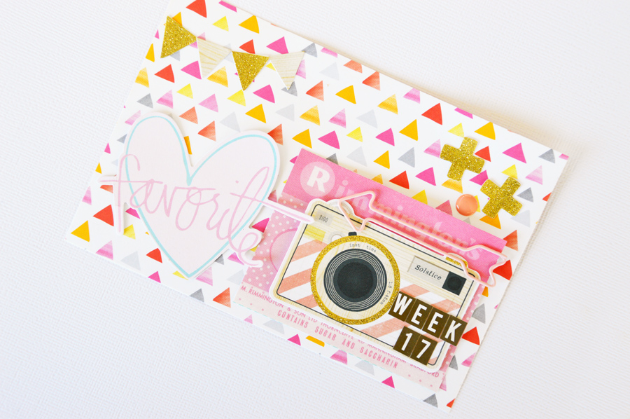 My title pocket was created the Amy Tangerine Rise & Shine patterned paper, teamed up with Crate Paper Poolside and a little bit of Heidi Swapp ephemera.