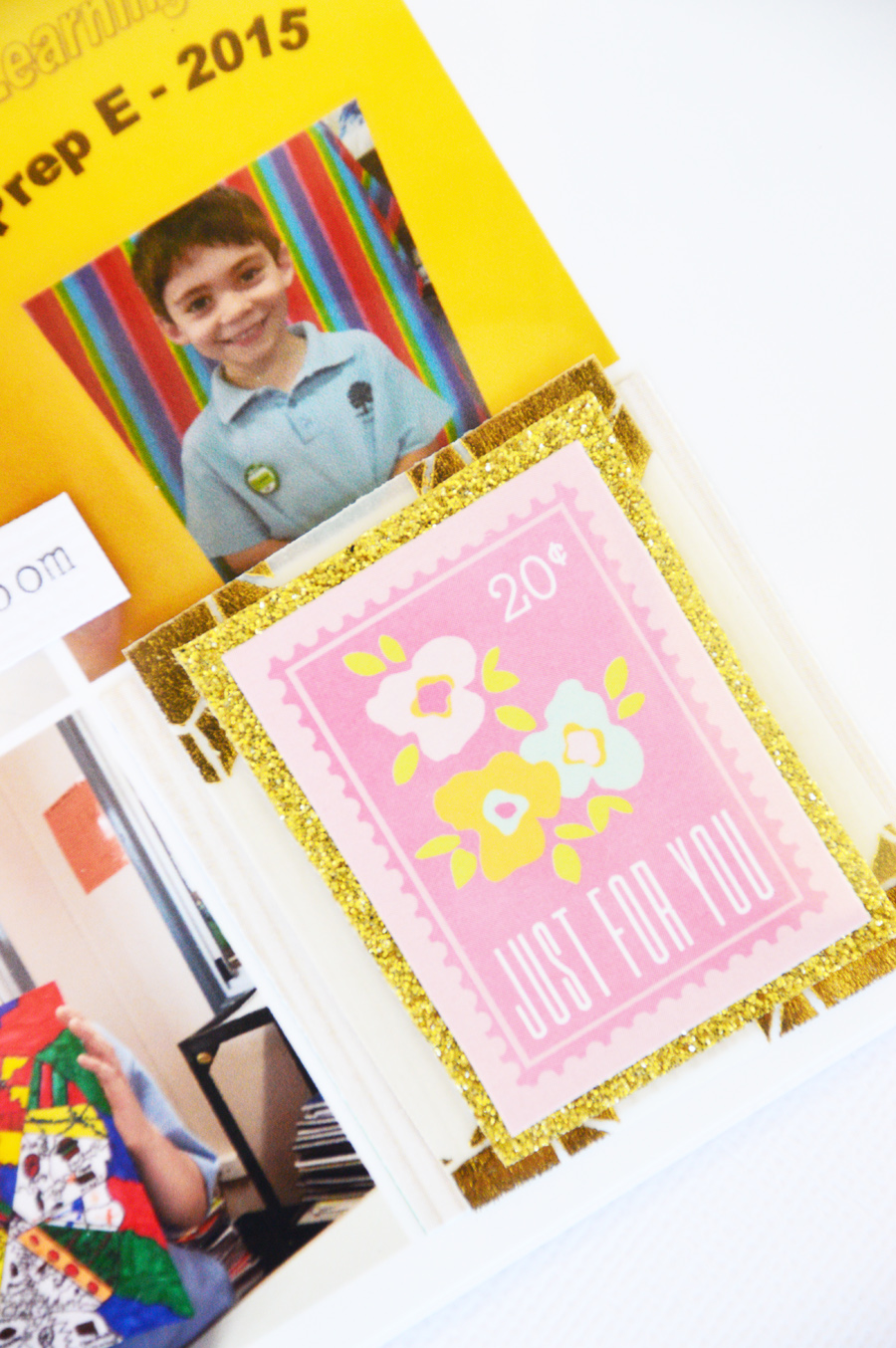 Finally, in the last pocket, I've combined several smaller photos and another layered paper stack. A simple typed phrase explains the photos while the handmade embellishment creates visual impact, linking page one with page two.