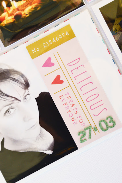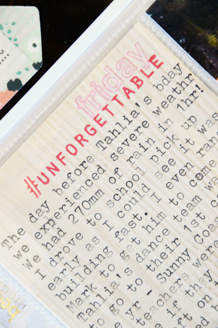 Last week I also mentioned wood veneers as being one of my favourite embellishments for adding interest to Project Life pages. In this pocket, all I needed to do was adhere the Cloud 9 wood veneer directly to my photo.