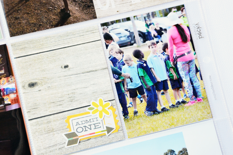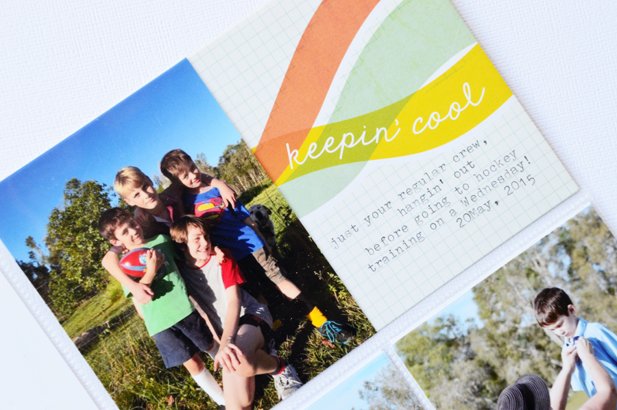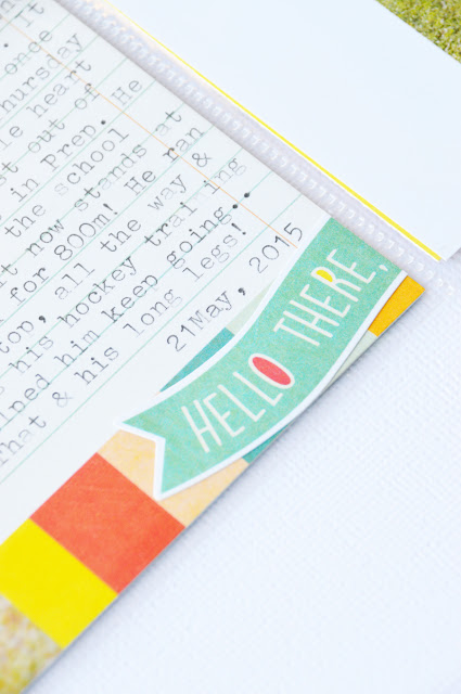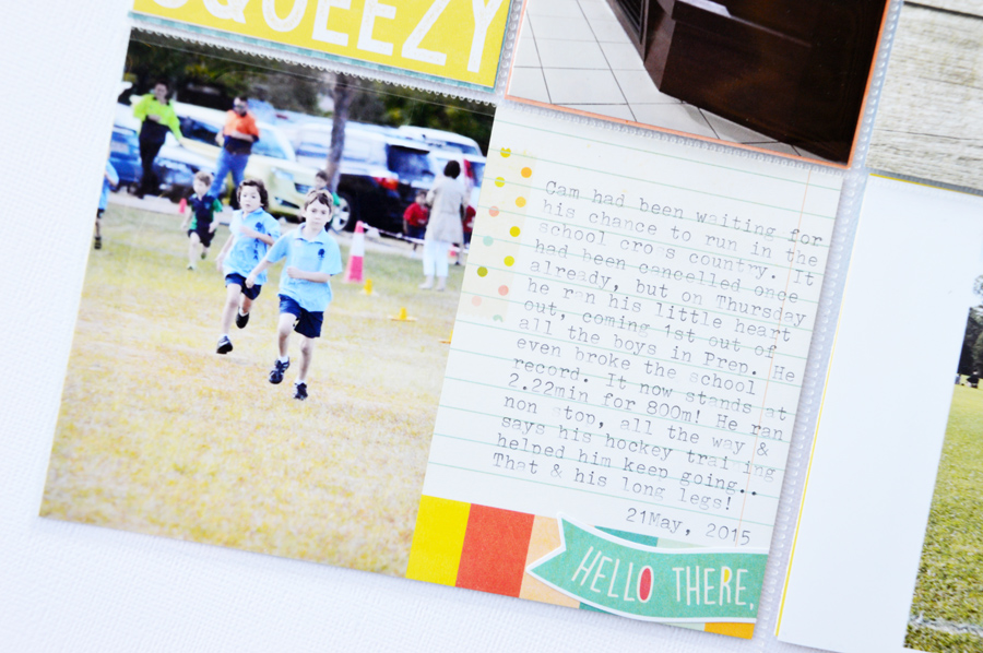 I love his little story of his first cross country race, and I'm so glad that I didn't have to print these photos in black and white so they wouldn't clash with the beautiful Simple Stories papers. The colour story worked well with my photos.