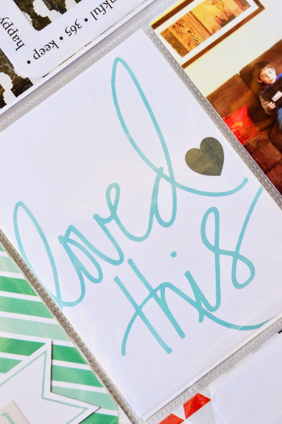 The 'loved this' filler card was originally sized at 4"x4". I've simply trimmed it along the vertical sides until it measured 4"x3". The content of the sentiment still remains and the handwritten font leads the eye off the card and beyond.