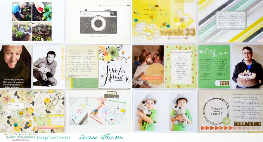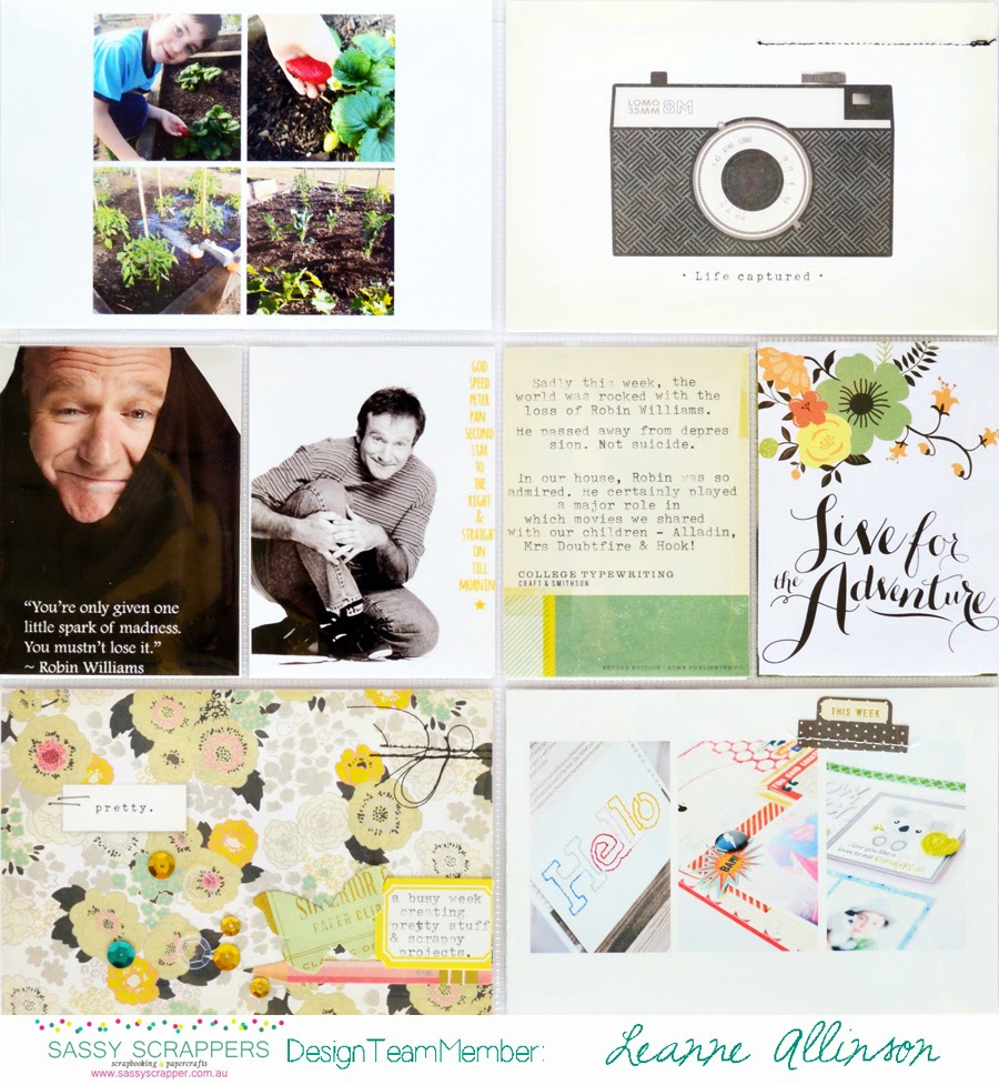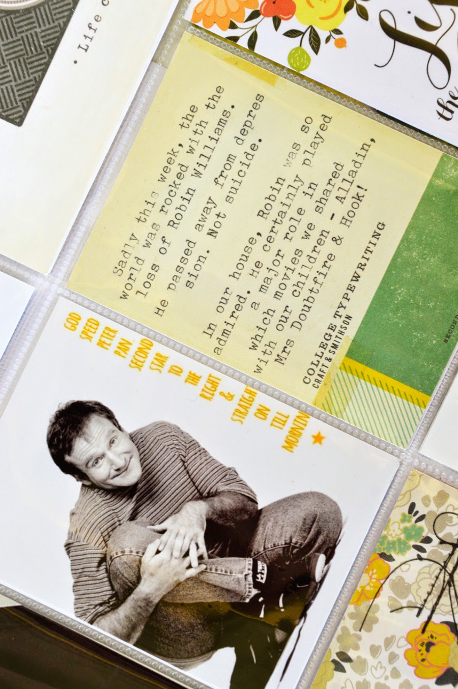 Other snippets of information were taken from world news events. The sad and sudden loss of Robin Williams needed to be recorded as part of my PL journey. I found some inspiring photos and words on Pinterest and simply printed them out at 3"x4".