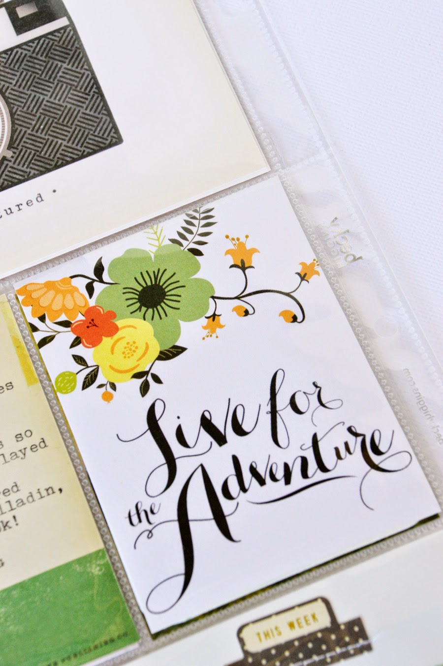 My choice for using the pre-made journaling cards therefore making it easy to just slip them into a dedicated pocket. Even more so because they are beautifully detailed and very little (if anything) needs to be added.