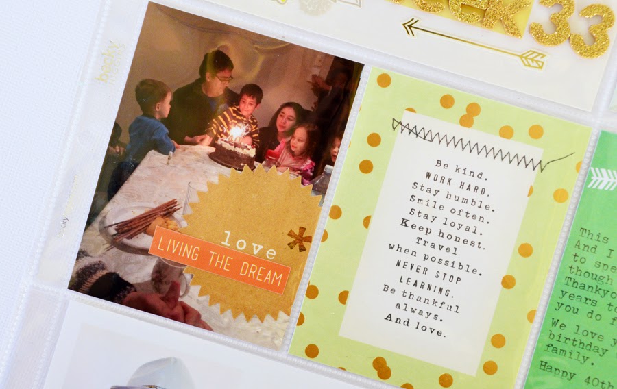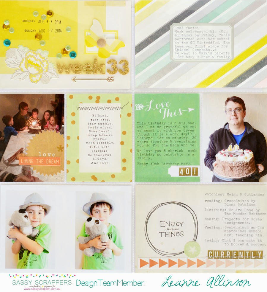 To change things up for this spread, the title pocket for Week 33 was added on page two.