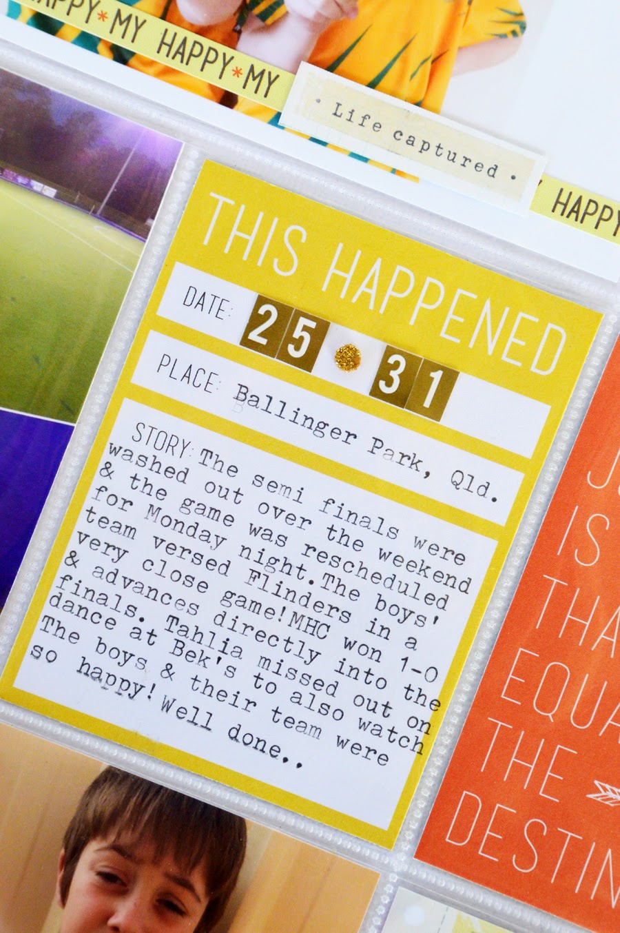 On page two, I wanted to celebrate my boys' semi final win, which saw them advance to the finals of their hockey season.