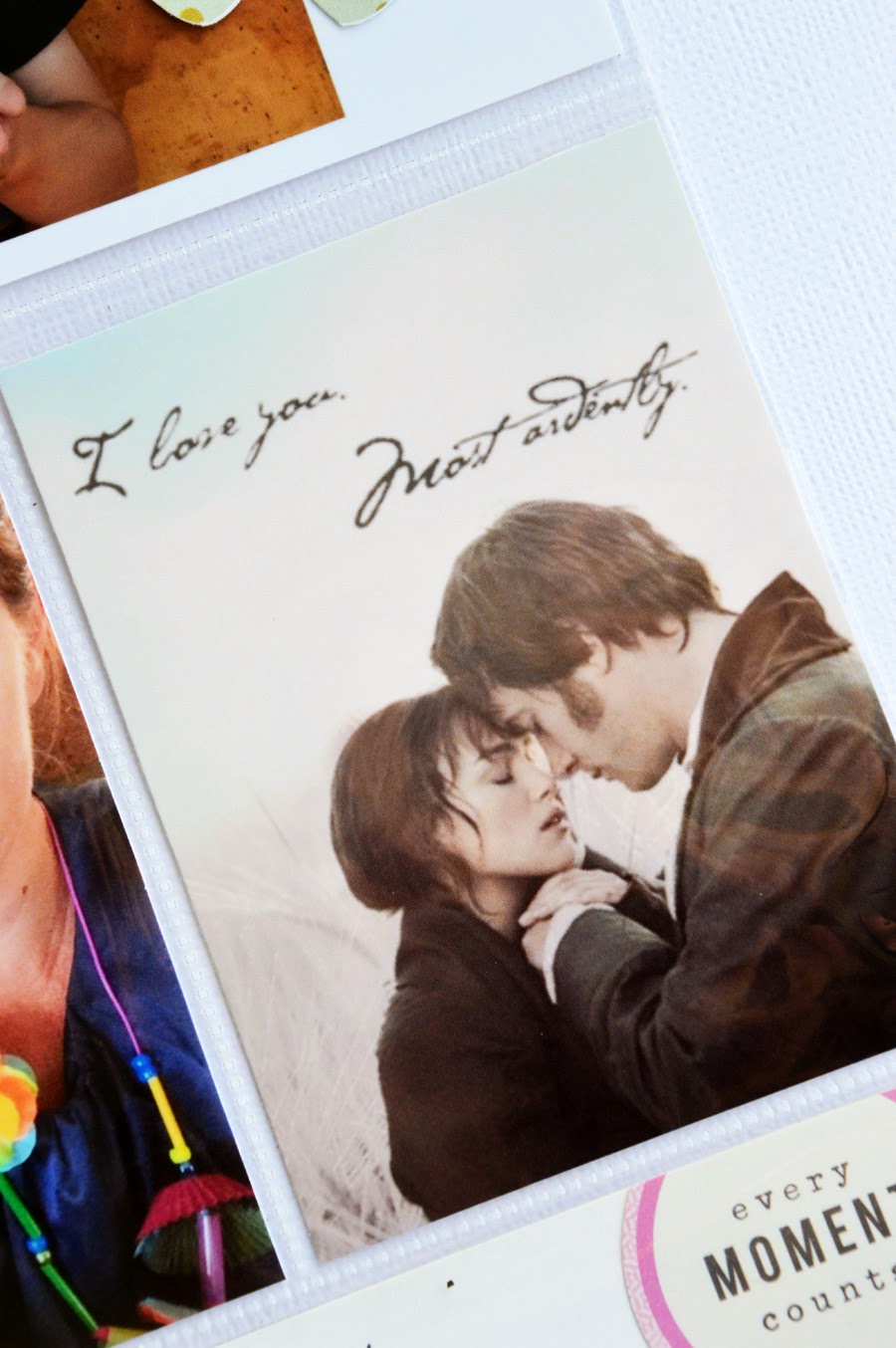 Finally, as the week wound down for us, I went on a Pride & Prejudice binge. I watched, not only my all time favourite movie but also the BBC tv series of the same name. It's not often I get a chance to spend the entire day experiencing a movie marathon. In fact, with four children, it's completely rare that I get to sit down at all! *grin* SO for this reason alone, I needed to include this part of my week in my PL spread.