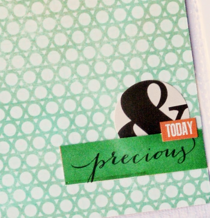 On the first page, I also trimmed a tag from the whole Crate Paper sheet and typed some of our story. I then added it a 3"x4" project life card.