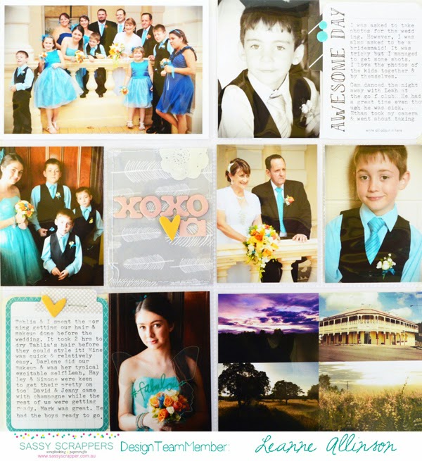 The first lot of journaling is hard to access, mostly because the pocket opens from the previous spread. This is where I have typed up the week's general events. I know it's there, but many people going through my PL album wouldn't think to check. However, using the back of a journaling card from the previous week, appeals to my sense of using all available space when needed! Besides! It still coordinates with this week's colours! *grin* A definite benefit when using a kit!