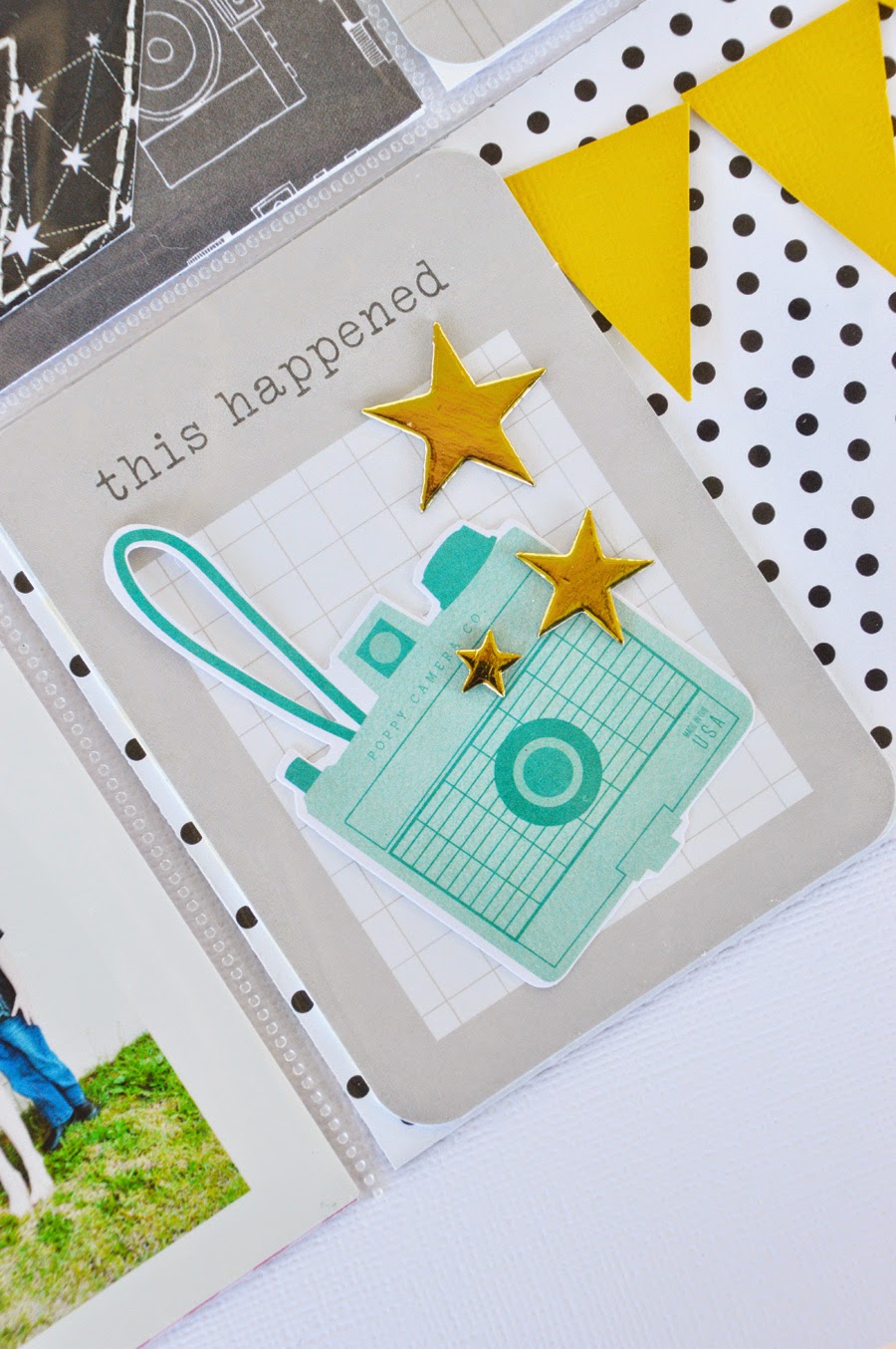 I chose the bright and beautiful colours from the Amy Tan collection because it reminded me so much of Summer activities outdoors! This week I've complemented the Stitched collection with pops of Studio Calico gold stars and the beautifully textured Prima alphas.