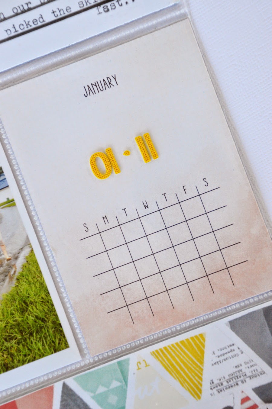Finally, I've used the Prima Alpha in yellow to help document the dates and placed them on the Amy Tan Felted patterned paper. This paper was trimmed via the months and into 3"x4" sizes.