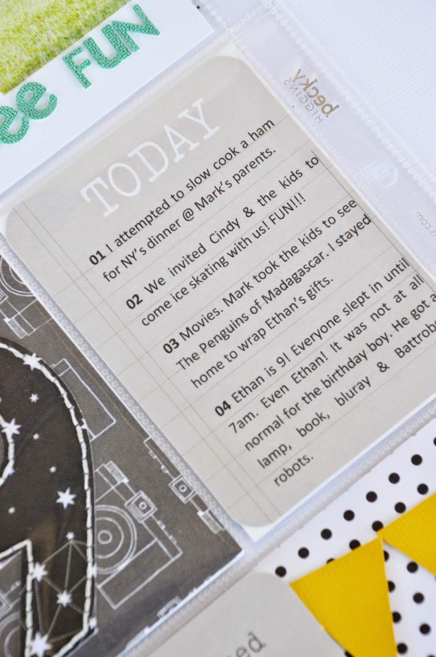 This year I want to have more substance to my journaling. I've been taking daily notes and then adding them, with the date, to journaling cards that slip straight the pockets.