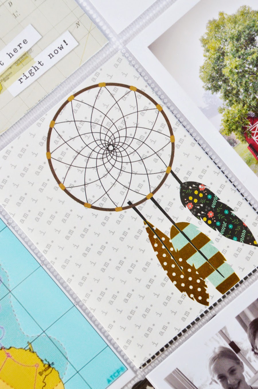 And the dream catcher image from Simple Stories 3x4 Journaling Card paper reminds me of the cyclone itself and was included as a decorative filler card.