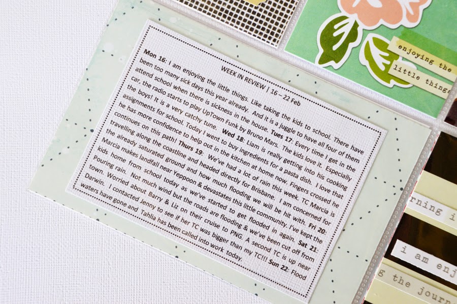 Week Seven started out casual enough in our household. The normal routine was in place and kids were at school. But then a major weather event decided to take centre place during this time and so life also began to reflect similar traits within my PL2015 pages.