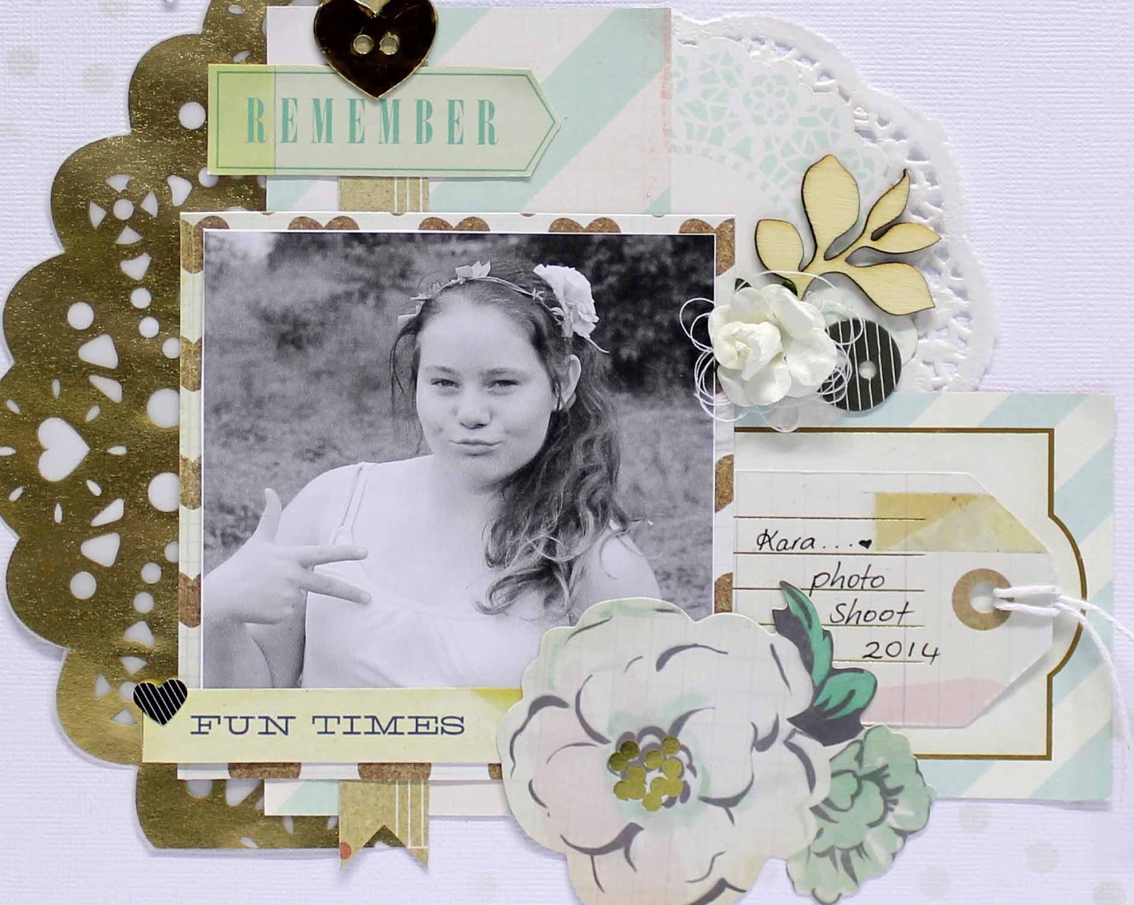 Lucky I had some of it leftover to created this fabulous layout of my daughter kara having fun with our photo shoot