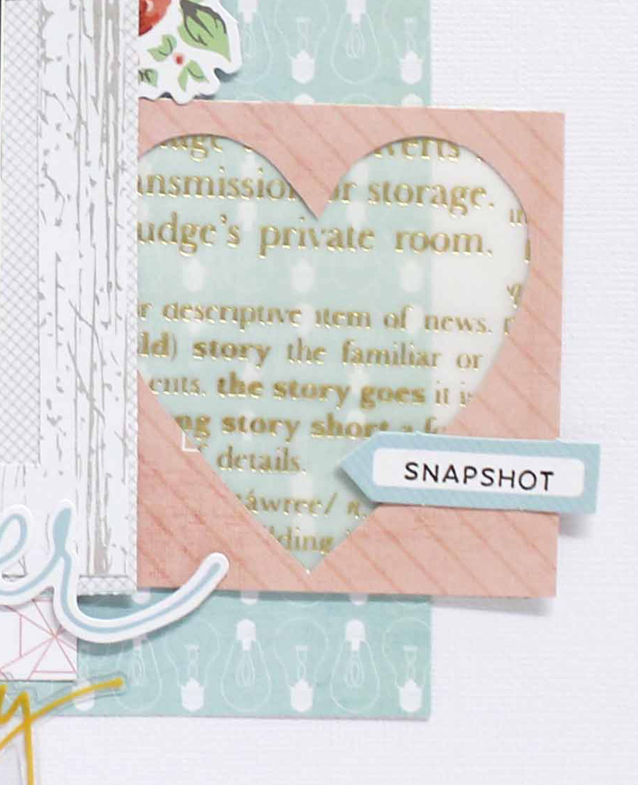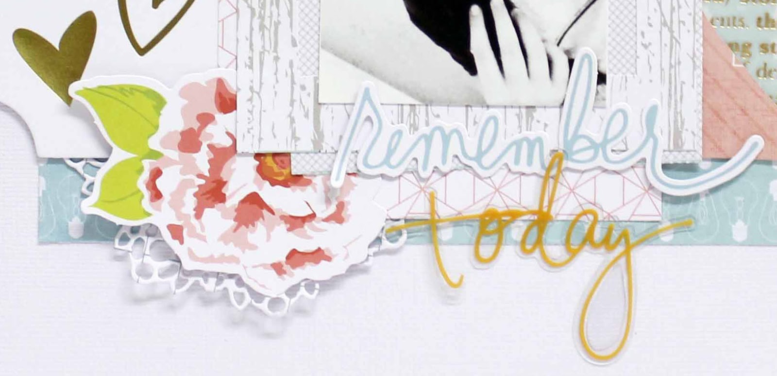 And for that extra girlie touch I added a die cut tucked under my layers behind my flowers