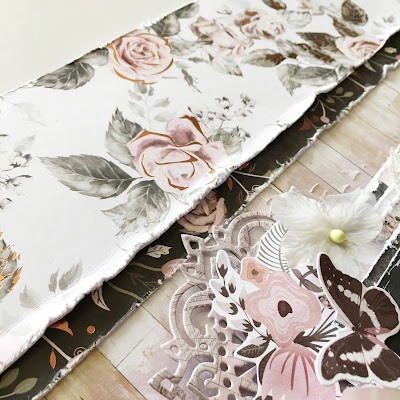 I wanted to create a layout with a shabby chic theme with lots of layers and height. The die cuts from this range are so so pretty and you really get loads to play with.
