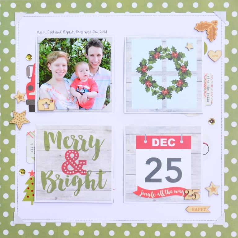 I really like the quality of the paper from PinkFresh Studio, it's a nice heavy weight and I used this statement piece (Winter Joy) as the base for my page and outlined the words 'Tis The Season' to use as my title for the page.