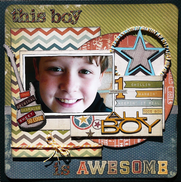 Good morning! It's Sam Hauzer here, with a layout I created over the weekend, using the new Awesome range by Simple Stories. If you have boys, you're going to LOVE these papers!!