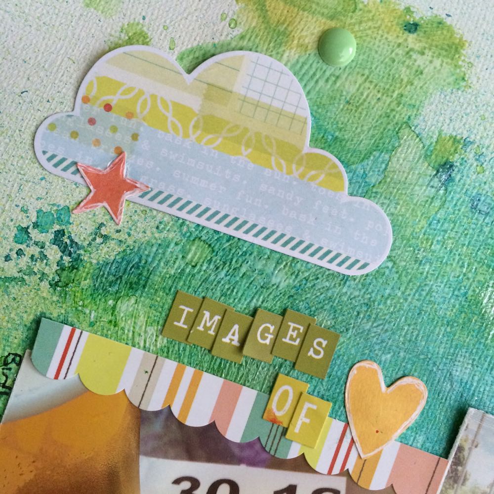 With the lovely colour on the background and once I'd added my cluster of photo's I really only needed a few stickers and die cut embellishments to finish off my page.