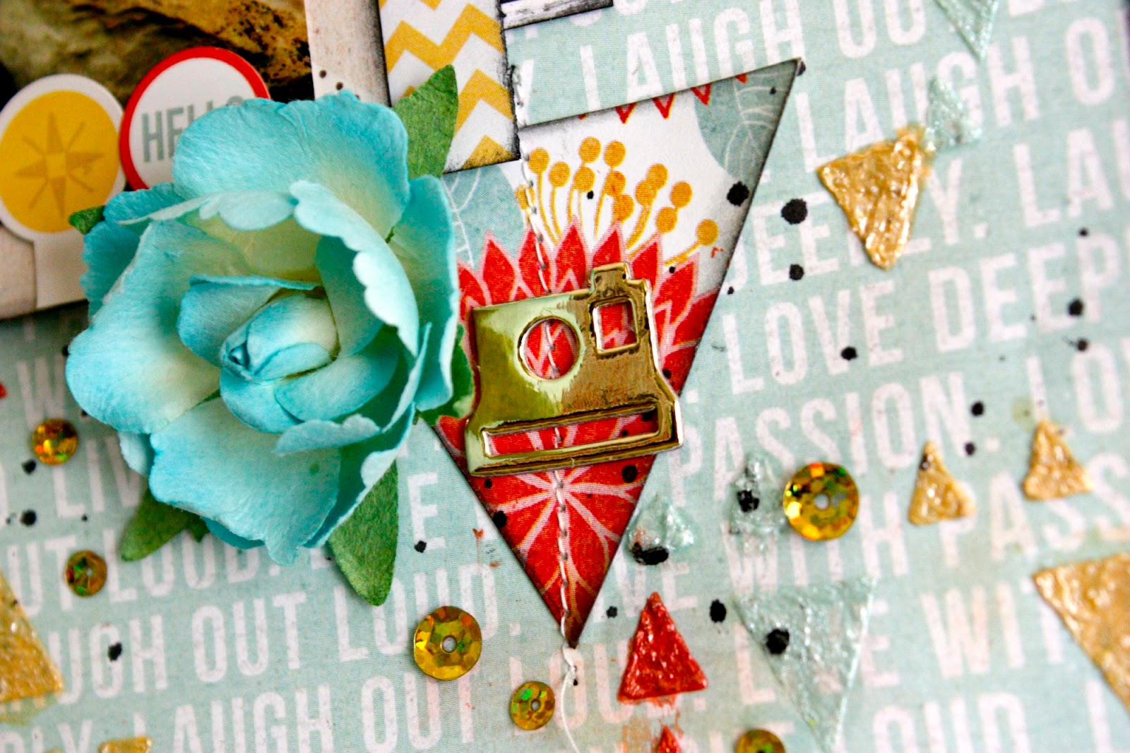 a Lovely Prima flower and a sprinkling of gold sequins.
