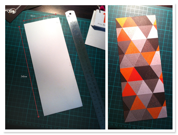 Next, take a piece of firm card stock and trim a piece that's 240mm (h) x 95mm (w).